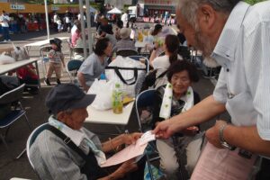 二本松市東和支所と共同で地域のお祭り「ふるさと祭り」のイベントに事務局の社会福祉協議会と共に参加し、お祭りに来場された方々へ、チラシやポケットティッシュを配布しながら、活動内容などをお話しさせていただきPR活動を行っています。チラシを見られた方より、民生委員へ相談等も寄せられています。